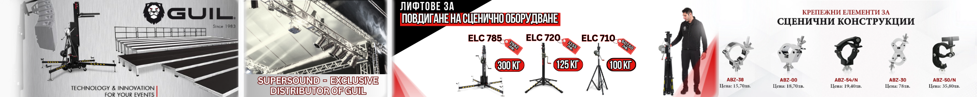 SUPERSOUND-BG.COM е ексклкузивен дистрибутор на GUIL за България. В нашият онлайн магазин ще откриете богато разнообразие от алуминиеви ферми GUIL – водещ испански производител, известен с високо качество, сертифицирани материали и изключителна надеждност. Предлагаме клиновидни, болтови, линейни, триъгълни и четириъгълни ферми, подходящи за изграждане на сцени, конструкции за осветление, LED екрани, изложбени щандове и професионални събитийни инсталации.