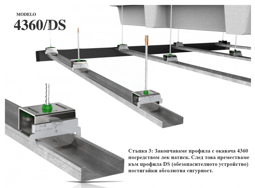 Model for profiles 60 mm. The model is designed with acoustic insulating arms made of high quality polymer with high resistance (MEGOL - IA30 and 35 C-UG / UVI F / 61 - P1250SPE). According to UNE EN 13964.