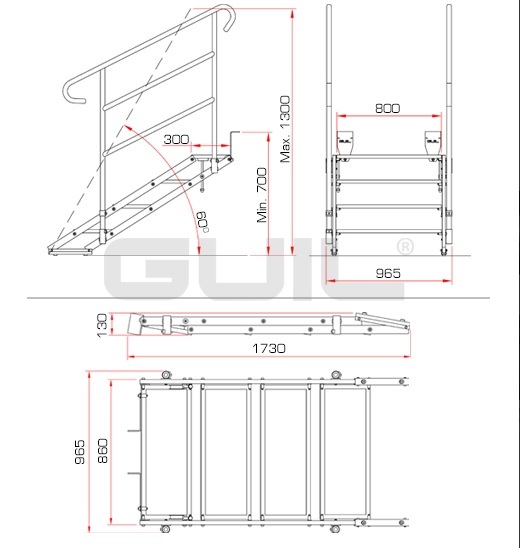 This fully adjustable access stair with folding design consists of four 300 x 800 mm steps