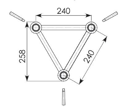 Description: The aluminum triangular truss ST5005 is one of the main components for the construction of a fixed and fixed structure for capturing stage lighting effects and speakers. Non-contact conical connector system