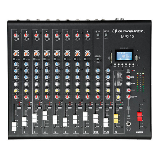 Description: Audio mixer with 12 channels, built-in processor, effects and integrated multimedia player.