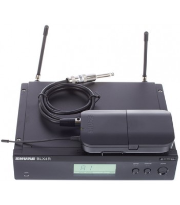 Shure BLX14R, SM guitar series, UHF wireless microphone BLX1 "pocket" Transmitter Quick-Scan function selection of free frequency handheld transmitter with 4 Pin TQG connector, 9,5 "1U receiver with a metal housing, unscrew the antenna, XLR and jack outputs, LCD display, WA302 guitar cable and mounting kit.