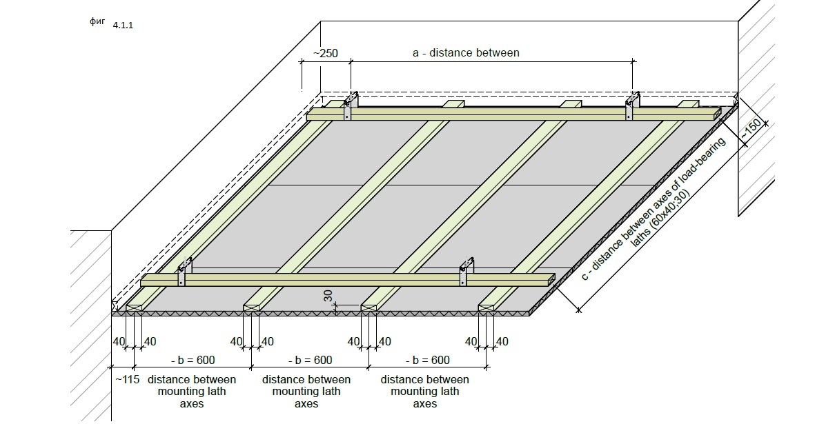 - load-bearing laths, which with suspension elements are fastened onto the building’s load-bearing structures;