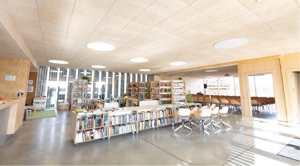 acoustic, aesthetic and mechanical properties, the panels are particularly well-suited for public buildings — offices,
