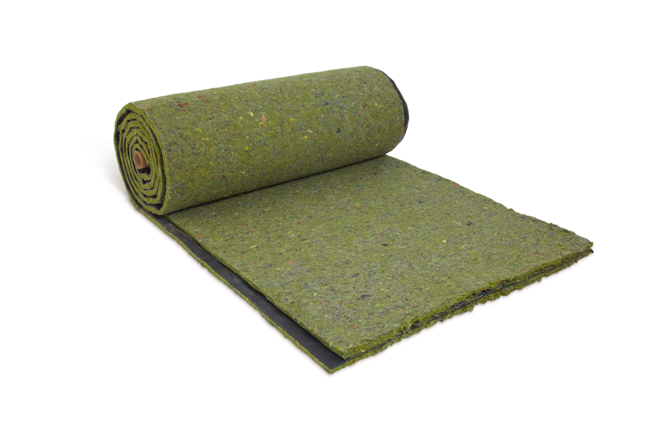 Multilayer composite made of two porous felt (16mm thickness) thermically bonded to a high density viscoelastic membrane of 4mm thickness.