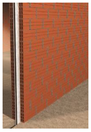 The division between the last row of bricks and the embossing strip should not be more than 30 mm. This space is filled with a mixture of gypsum and water in the following approximate proportions: 1,8 kg gypsum and 1 l. water.