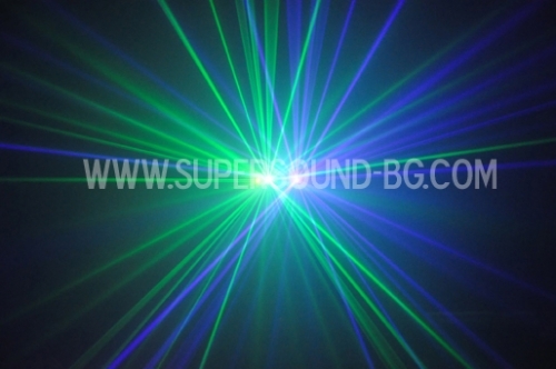 Characteristics: Double green and blue violet laser. More than 100 laser model 300 laser effect. Four modes in one, Sound active, Auto, DMX512, Master / slave for different applications.