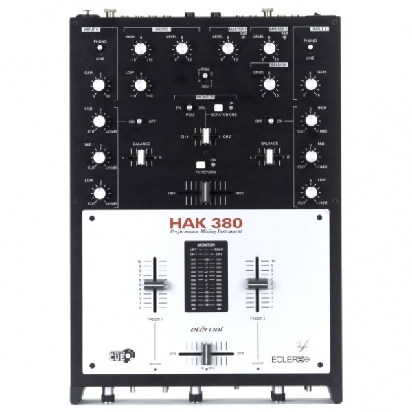 Revolutionary feature that allows the DJ-s cue to put on their headphones scratch before a live performance. Absolute control over your spots. The second generation of ETERNAL crossfader is driven by high-end microprocessor and multiple control options to accommodate your spots for every situation. HAK 380 features a double adjustment of the crossfader, so both sides controls are independent. The forms vary smoothly from soft to sharp contours. Moreover Haq has 380 double crossfader cut-in setting to allow controls of the two countries are also independent. Thus we can fully control exactly where our crossfader physically will start to cut the sound.