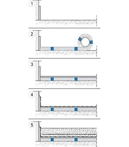 Elastic absorbent mat comes in rolls of 1.2 m width and 7.2 m in length, with a standard thickness of 50 mm. Pads are always cubic (50 mm) and are included in the wave distances of 0.4 m in both directions (Plan "A") or 0.6 m in both directions (plan "B"), depending on the load, which is intended be placed on the floor. Purpose - load on the concrete slab of 416 to 693 kg / m². The price per square meter!