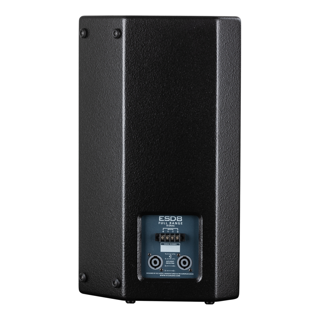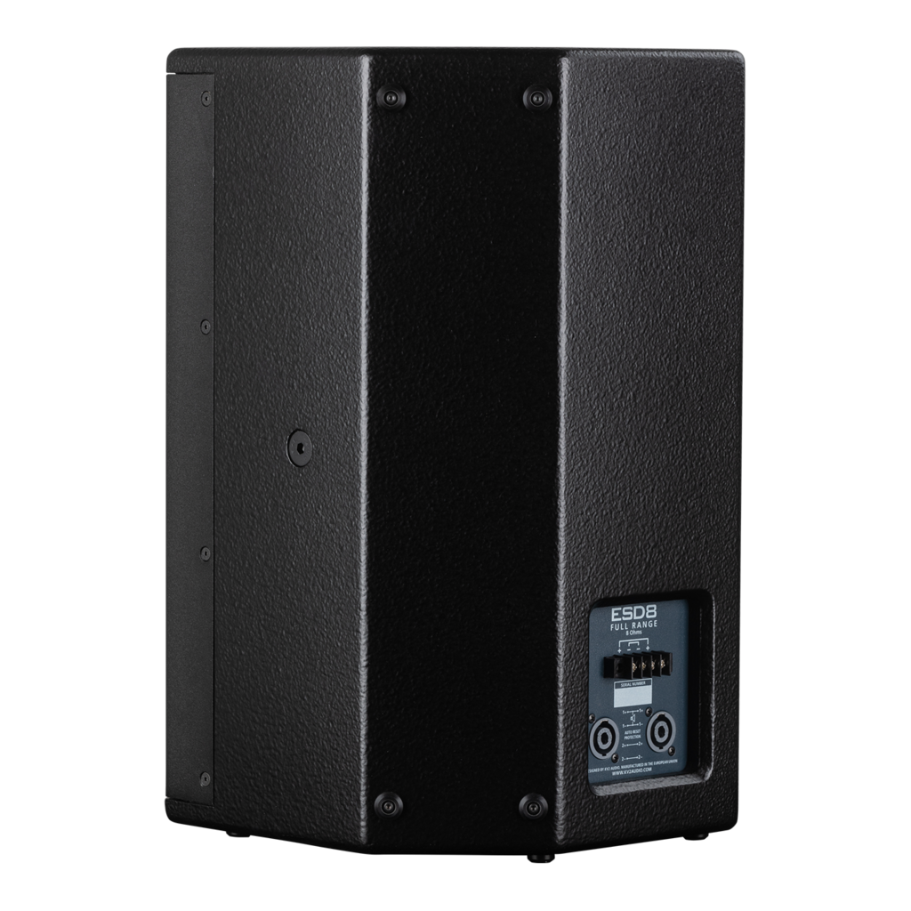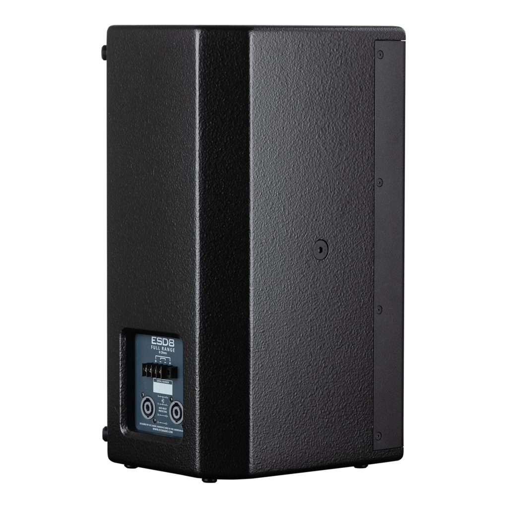 The ESD8 is a compact passive 2-way, high output full-range loudspeaker incorporating an 8" trans-coil woofer and a 1” compression driver coupled to a wide dispersion horn. Presented conservatively in a unique angled low-profile Baltic birch enclosure and designed to present exceptional speech and music definition, the ESD8 provides a smooth hi fidelity response and delivers a natural sound quality and level that is superior to many larger competing products. Ideal as a main system speaker or as a in-fill for larger systems, the flexible ESD8 can be applied quickly and efficiently on podiums, stands or suspended.