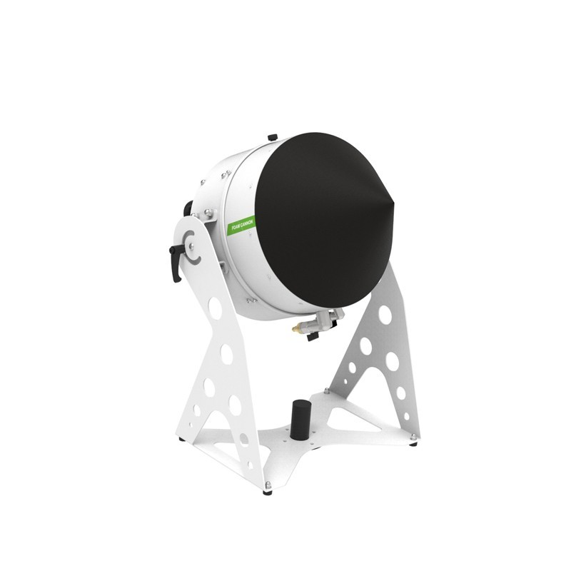 The FOAMER ONE machine is a standard foam generator ( cascade effect) which operates at low voltage and which benefits a very high level of IP protection. The particularity comes from its fan which is waterproof. The main benefit is that it eliminates the risk of electrocution if the machine is accidentally submerged in water. Thanks to its specific nozzle equipped with a clever venturi system, this machine is able to produce large quantity of foam even with low pressure of water supply. Its design makes it very light and particularly handy. Its installation is very easy, it is also possible to position it on a tripod. Economical machine to use - low consumption of liquid concentrate for high foam production.