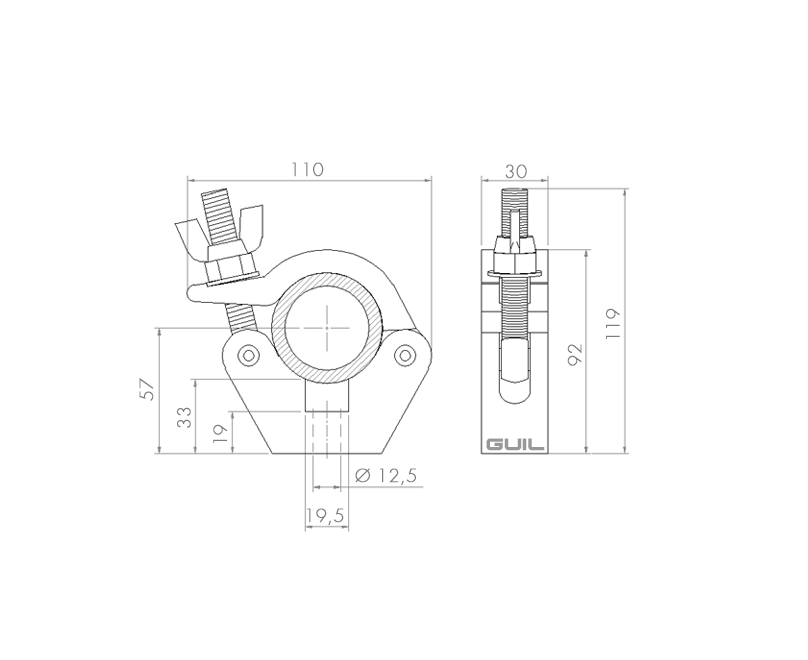 - By taking away the joining screw (M12 8.8) they become independent clamps and we can add at their endings an eye-nut, a bolt and wing-nut Ref. ABZ-04 / Ref.ABZ-03.