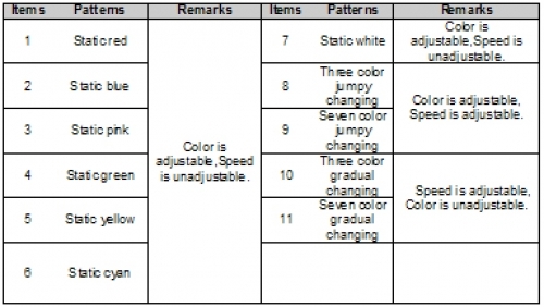 Button 2: Pattern function key, you can select a different mode change