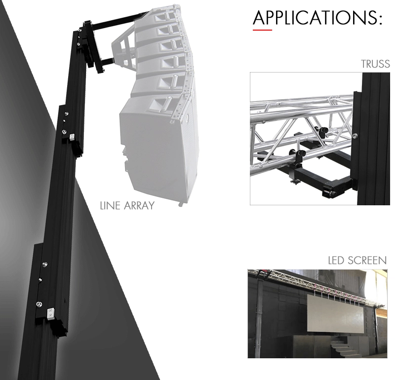 Description: Lifting Tower, designed for lifting loads up to 300 kg to a maximum height of 8 meters. Lifting towers developed for loading heavy loads at great heights. Easy to use with a compact design and great durability, make the ULK Lift an ideal addition to any type of event.