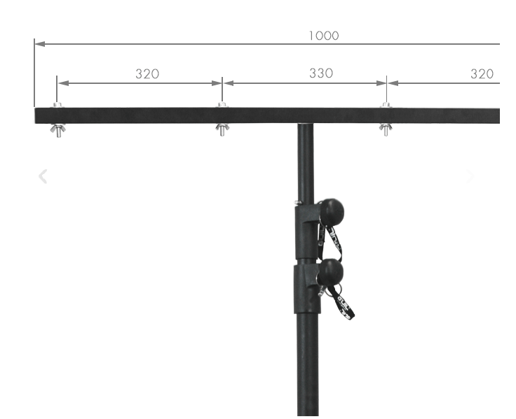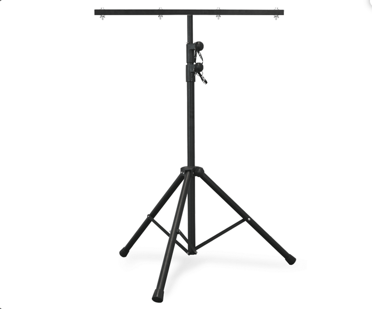 Description:Manual lighting stand with crossbar for 2 to 8 spotlights, using the top and bottom parts of the crossbar. The stand includes the TF-07 tripod and a detachable aluminium crossbar (which screws onto the spigot of the TF-07). Includes nuts and bolts to attach the spotlights.Its special compact design with 3 pole sections, makes this stand a perfect option for any event, with only 1.27 m high when folded, the lighting stand can reach a height up to 3.19 m.The lighting stand ref. TF-08 is equipped with double safety locking system by means of pressure knob and safety bolt (locking pin), offering maximum resistance and durability.This useful lighting stand has a reinforced base with M6 screws, strong leg braces of 25 mm x 3 mm and large rubber stoppers, giving maximum grip to the floor and thus perfect stability of the stand. The tripod, with three telescopic sections of Ø 40 mm, Ø 35 mm and Ø 30 mm, is manufactured in steel and finished in a textured, black, anti-scratch powder coating.