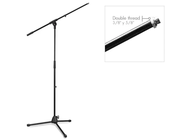 Double thread: The boom arm has double threaded fittings (3/8 ″ and 5/8 (), which makes it possible to attach any type of bracket to it.