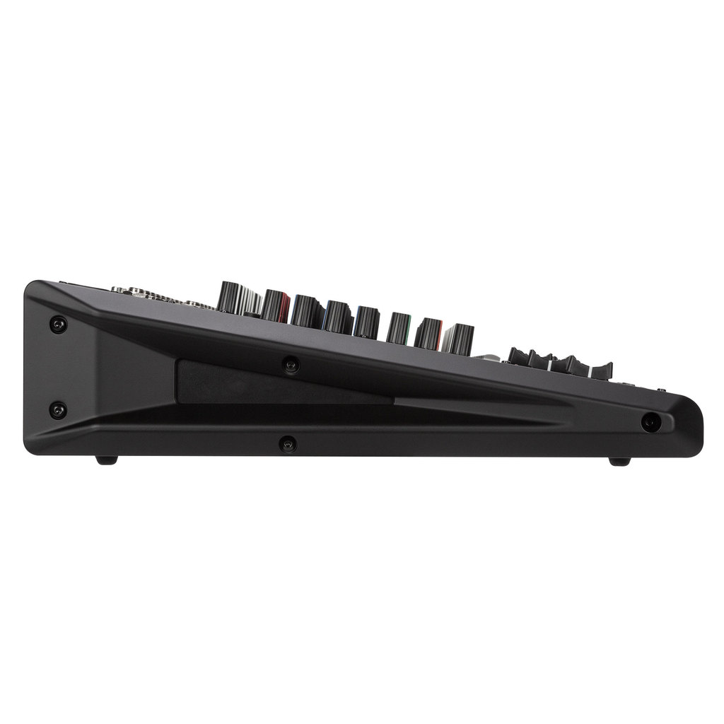 The F 12XR features 6 Mic Preamp Inputs, 4 Mono Line Inputs, 4 Stereo Line Inputs plus multi-FX and Recording via USB port, with balanced +28dB main output (Stereo XLR + TRS) and 4 single control compressors. The Mono channels are provided with 3-band EQ and Stereo with 2-band. The mixer features 16 PRO DSP internal presets and 2 Aux sends (1 pre,1pre/post fader). It also features a stereo output bus and 60mm faders.