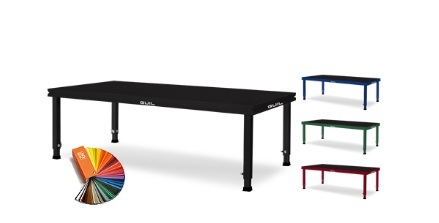 GUIL manufactures 3 types of platform legs (NOT INCLUDED): fixed height legs for a specific platform height, fixed height legs with leveller and telescopic legs for an adjustable platform height (or uneven terrain).