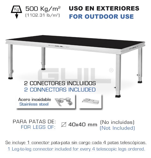 Note: 1 leg-to-leg connector (ref. TMU-10) is included free of charge for every 4 telescopic legs ordered (NOT INCLUIDED)