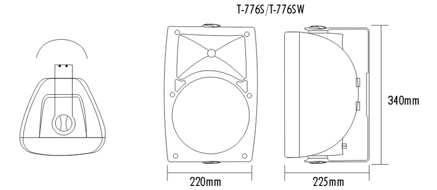 Description: The T-776SW is a wall mount speaker built-in 70v/100v transformer. The 70v/100v transformer technique reduces line losses on longer distance and allows easy parallel connection of multiple loudspeakers. The built-in 6”+1.5” two ways speaker driver is designed of wide frequency response 60-20KHz, the RMS 60W power outputs are suitable for most of the applications. The ABS grille, ABS enclosure and stainless mounting bracket are of black color. Easy and secure wall mount installation through the supplied mounting bracket. It is ideal choice for industrial and commercial applications in hotel, school, office and factory where background music and paging is needed.
