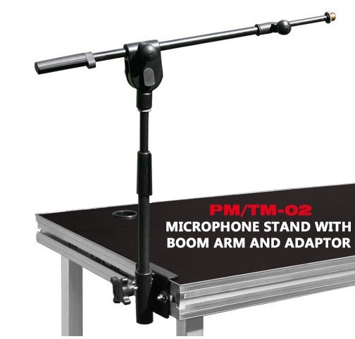Description:PM/TM-02 Tabletop microphone stand with boom arm and adaptor to fit to DJ & Sound Engineer Platforms ref. MDJ