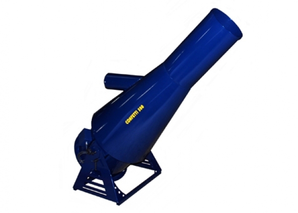 Description: At best machine for disposal of confetti-powered electricity. Very efficient and reliable it can continuously shoots confetti distance of about 25 meters at different angles thanks to the positioning of the key. Built of steel and aluminum making it much lighter than others of the same class. Comfortable with this machine is that you can use two main parts as interchangeable Helicoidal fan with induction motor (0.55kW) or a centrifugal fan. Is powder coated in black. There are options for the base feet are 0.5 m and 1 m.