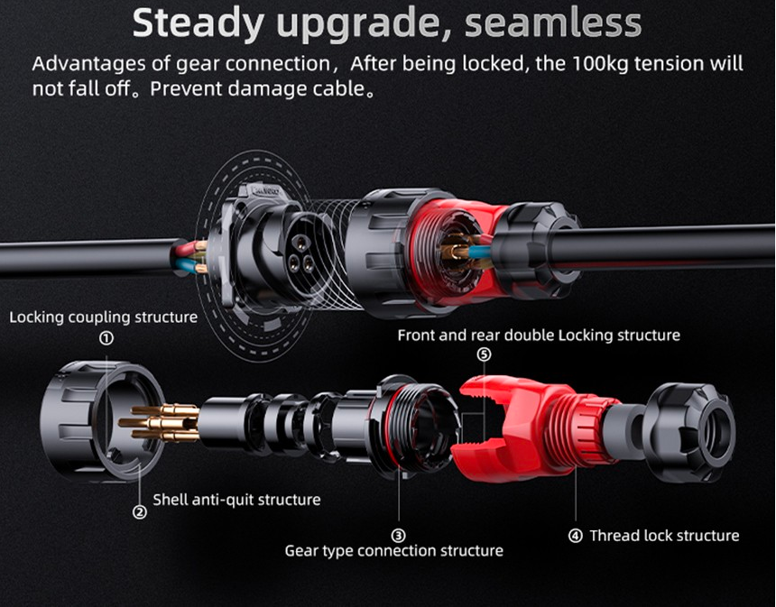 Description: CNLINKO's new series of waterproof connectors YM (M20, M24) uses the characteristics of polybutylene terephthalate (PBT) as a die-casting material and as a raw material for the multi-core product design improving corrosion resistance and safety. The entire body of the connector adopts a unique spring type of rotating locking connection. The precise internal construction and the strong structure ensure a safe and stable connection, as well as transmission performance guaranteeing the stability of the electric power. This series of connectors meets the needs of companies supplying power and signaling equipment.