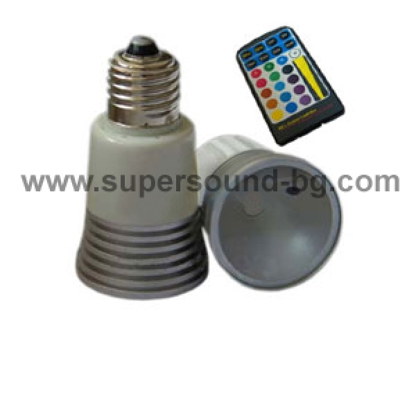 Description: RGB Lamp 5W, E27, remote control. Possibility of many options for color change with an infrared controller.