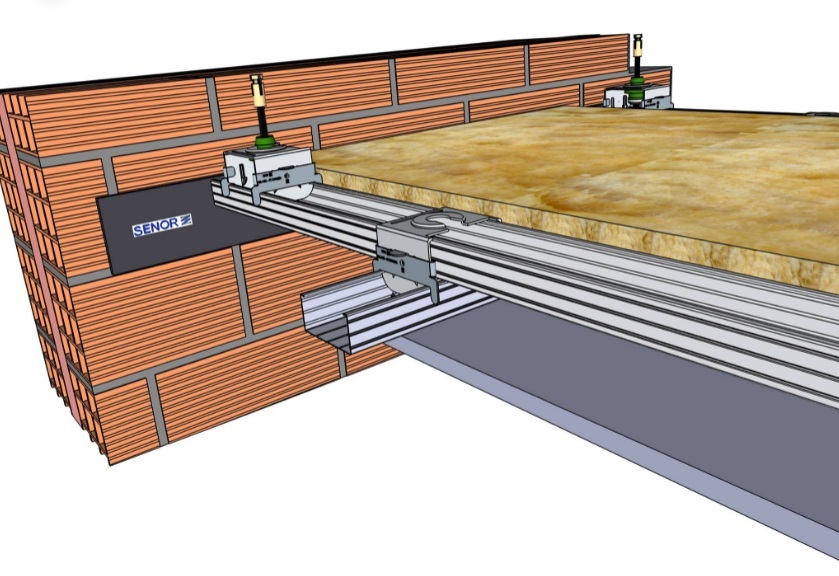 Its direct attachment to the 60 mm ceiling profiles makes it unique. This type of acoustic insulator is designed to destroy and attenuate the transmission of vibrations produced by equipment with rotating and repetitive shocks above 20Hz.
