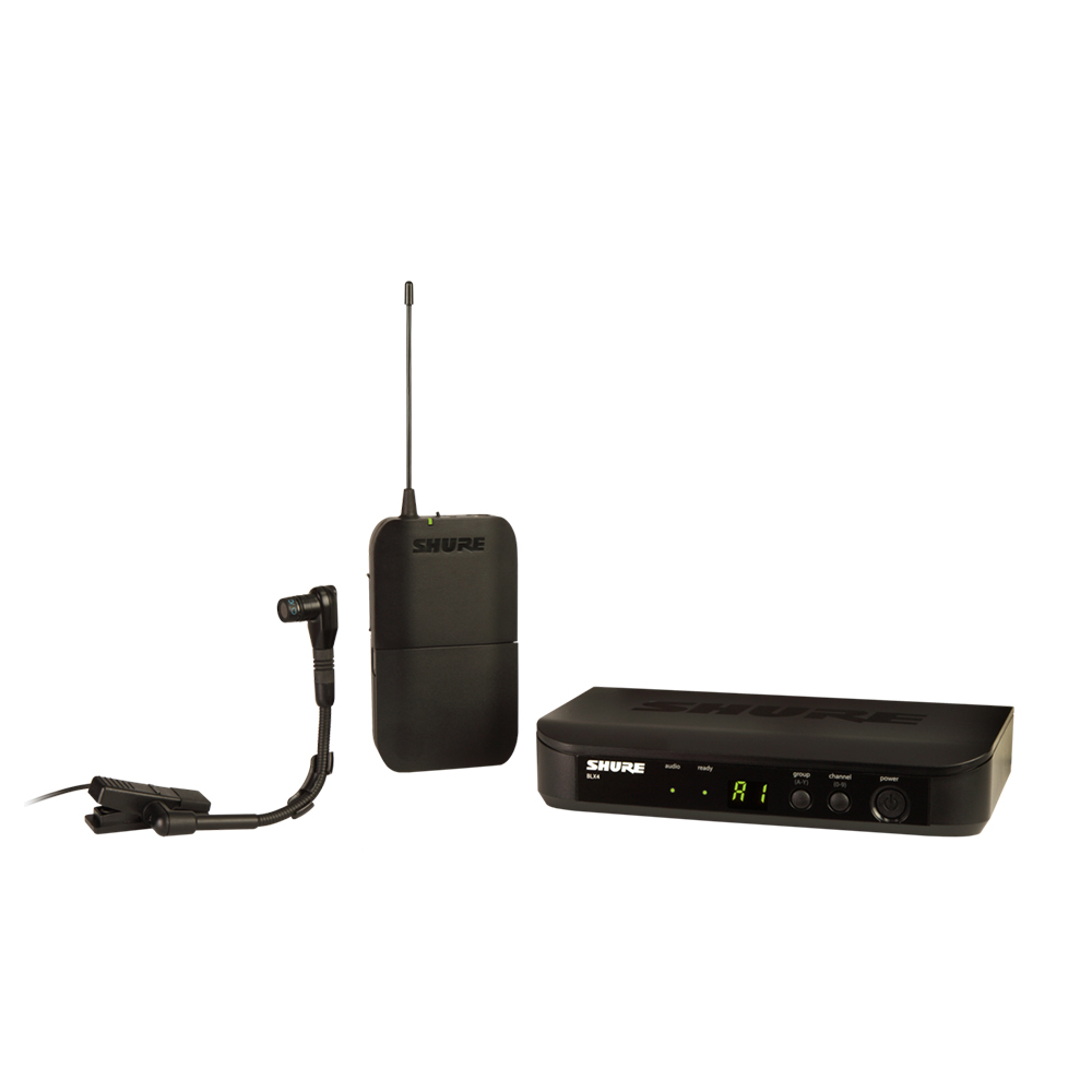 Shure BLX14 / B98 - BETA instrumental series, UHF wireless system with pocket transmitter and BLX1 Beta98 microphone - Clip 3 systems in parallel, Quick Scan feature a choice of free frequencies, condensers microphone clip Beta 98 H / C 20 - 20.000 Hz cardioid , receiver with plastic housing, built-in antennas, XLR and jack outputs. Portable suitcase kit model 95E16526, supply kit, model PS23E.