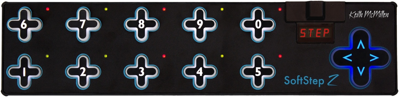 SoftStep 2 provides visual feedback from backlit keys, LED indicators, and an alphanumeric display.