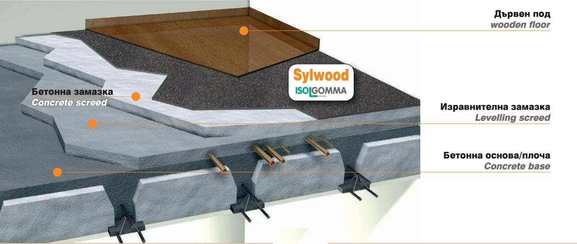 Sylwood series is a range of innovative, high quality products specifically designed to improve the sound insulation of existing buildings. Sylwood is thin processed rubber mat with high density with added cork granules that absorb noise from walking / stepping in accordance with local standards (control standards of construction) design. This product is specifically designed to meet all requirements for sound insulation in the restructuring and improvement of the existing pavement, including normal and ready to use wooden flooring. Sylwood can easily be applied directly under wooden flooring and details.