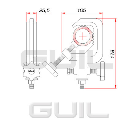 - Its lower part is provided with a stud that is attached to the light and there is no need to separate the clamp from the pipe.