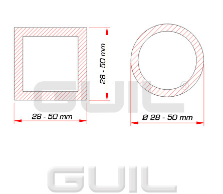 - Designed to securely attach pipes with an outside diameter of 28 to 50 mm.