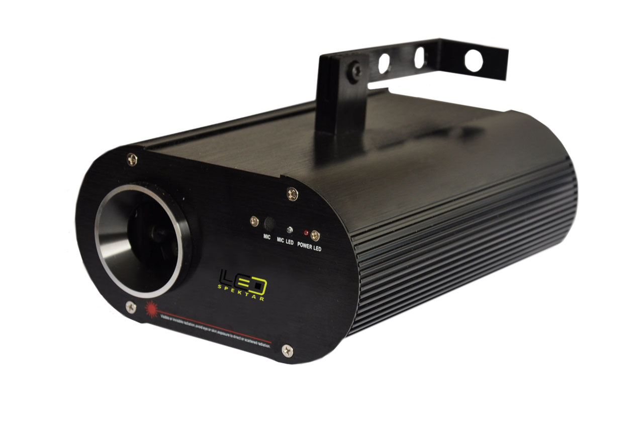 Description: Animation RGY laser with high-speed optical scanner to create animated graphics. 256 programs were built with figures and patterns. Has strobe effect, zoom +/- torque settings of speed and drawing.