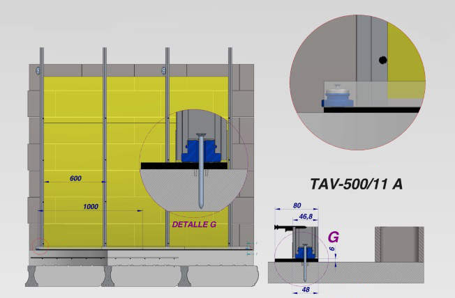 The vibroinsulator TAV-500/11 A allows acoustic isolation between materials in the installation without losing its mechanical security.