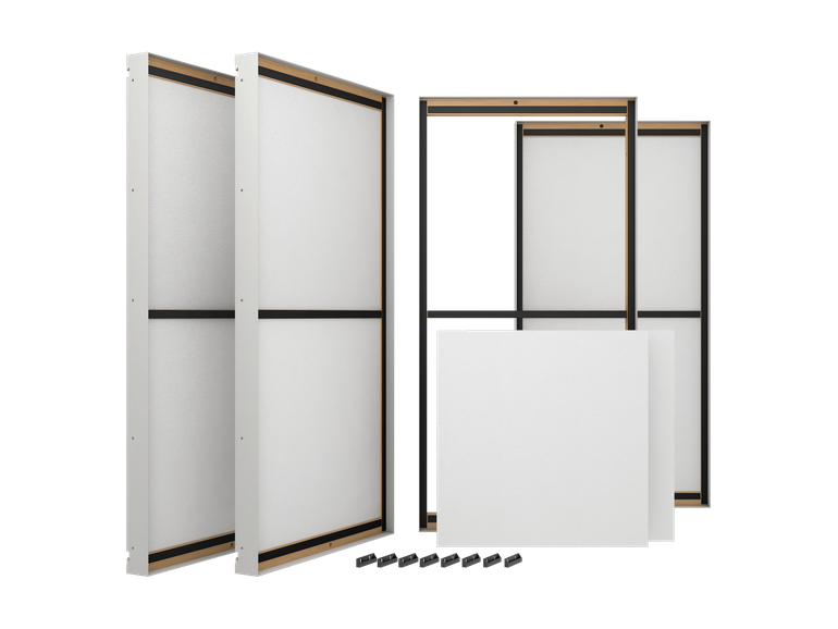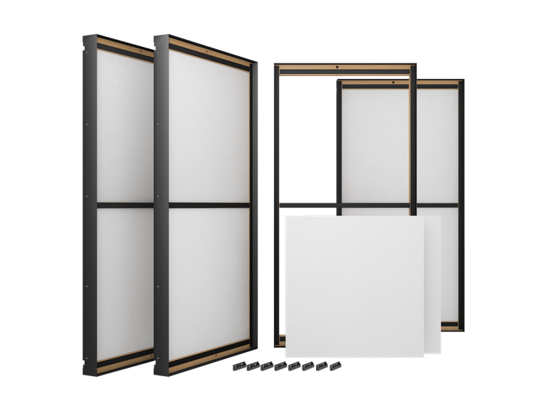 VicSpacer Plus is an upgrade to Vicoustic’s flagship product Flat Panel VMT, specially developed to improve the acoustics of any room. This version of the new VicSpacer includes 8 extra PET panels, to further improve the performance of Flat Panel VMT. By using one additional layer of PET to increase absorption, this new accessory will help to deal with the most demanding acoustic challenges, with a sustainable solution made mainly from recycled plastic. The new fixation system used by VicSpacer Plus makes Flat Panel VMT compatible with the VicFix fixation system, either the VicFix Mini or the J Profile System, already being used on other Vicoustic’s solutions. VicSpacer can be installed in the ceiling (using VicFix J Profile 2m) and it is possible to use it as Bass Trap, by placing it in the corners (using VicFix Corner and VicFix J Profile 80mm). Made from wood and lacquered steel, it was designed to cover the white sides of Flat Panel VMT in a stylish and visually appealing way, available in White, Black and Grey Matte. VicSpacer Plus will need to be combined with Flat Panel VMT of 20 mm thickness (not included).
