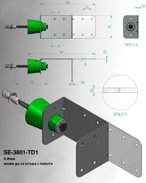 - SE-3801-TD1 density of 0.8 mm galvanized steel
