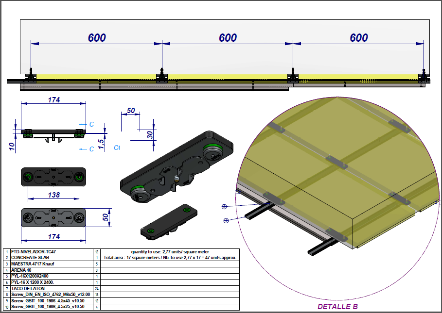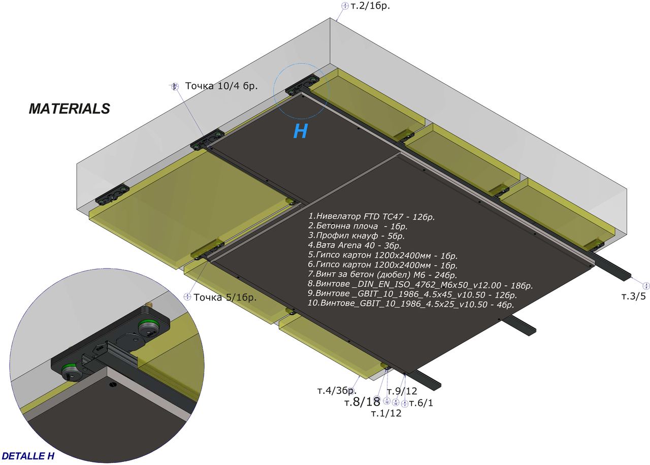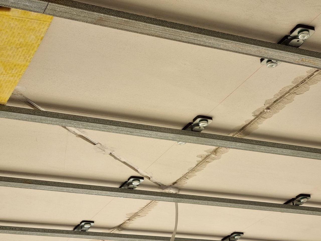 Description: Direct to wall damping system. Ours allows isolating and separating partition walls on ceilings in a minimum space. It has advantage of correcting the imperfections present in facings, providing quality and performance to the different finishings.