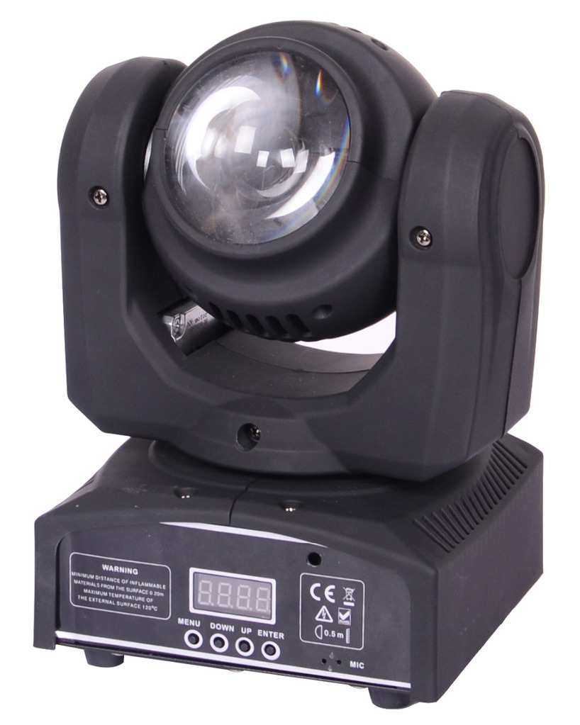 Описание: Малък, компактен и лек интелигентен светлинен ефект тип - ''движеща се глава'' което го прави лесен за монтаж и експлоатация. Снабден с 1бр високо ярък 40W RGBW 4in1 LED. Сканирането е бързо и с голяма точност на позициониране. Интелигентен дисплей за контрол лъча на температурата, за да се гарантира по дълъг живот на диода. Има вграден ултра-тих мотор, който отговаря на нуждите на съвременния движещи се глави.