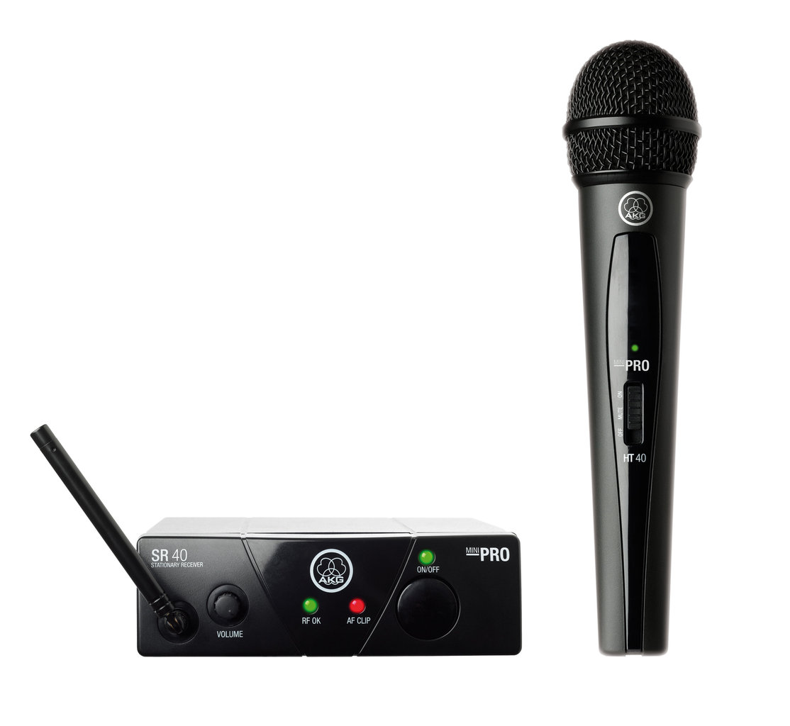 Мини приемниците на AKG SR 40 осигуряват три светодиода, които показват On / Off статусът на микрофона, силата на сигнала (RF OK), и аудиоклипинг (AF Clip). Контролът на звука определя нивото на 1/4 инча изходен жак. Приложеният превключваем режим на захранването работи на всяко напрежение 110-240 VAC и включва ЕС, Великобритания, и САЩ адаптери.
