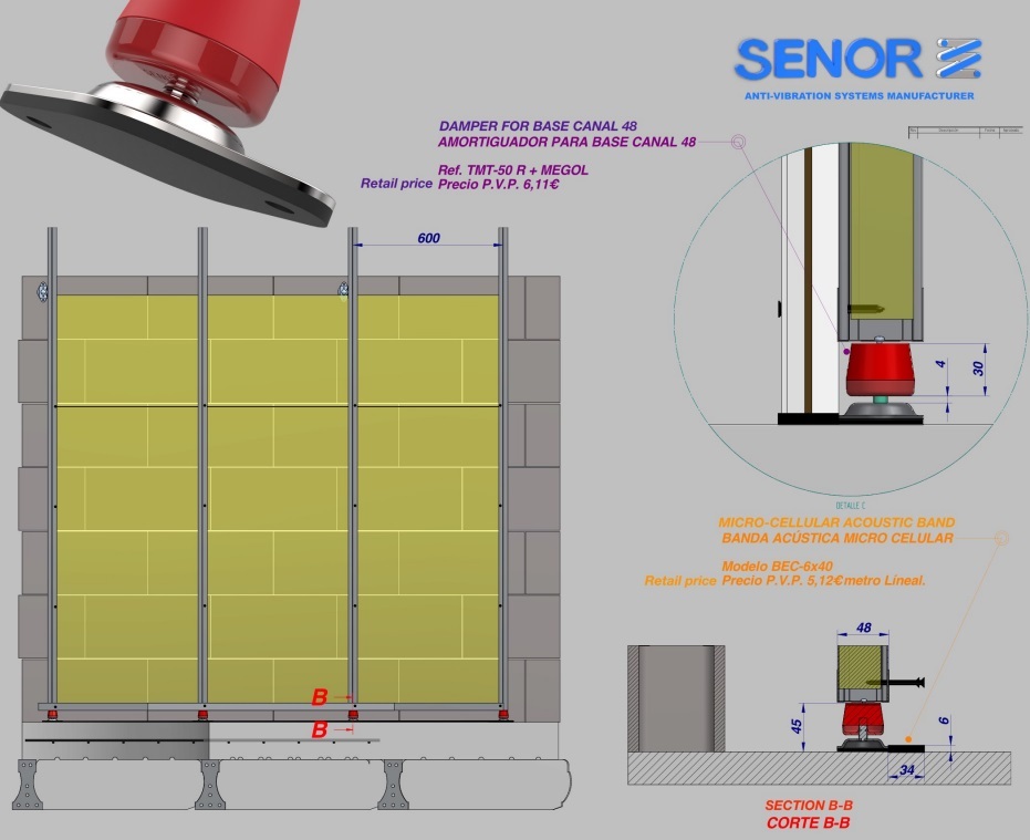 Амортисьори от последно поколение с изключителен дизайн SENOR за основа на преградни стени или акустични преградни стени.