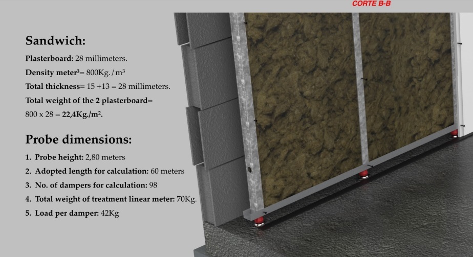 Конструкцията на акустичното ядро е направена от висококачествен полимер с обработка срещу ръжда "MEGOL IA 50 C-UG / UVI F / 61 P1250SPE", строго произведени съгласно стандарт (UNE EN 13964).