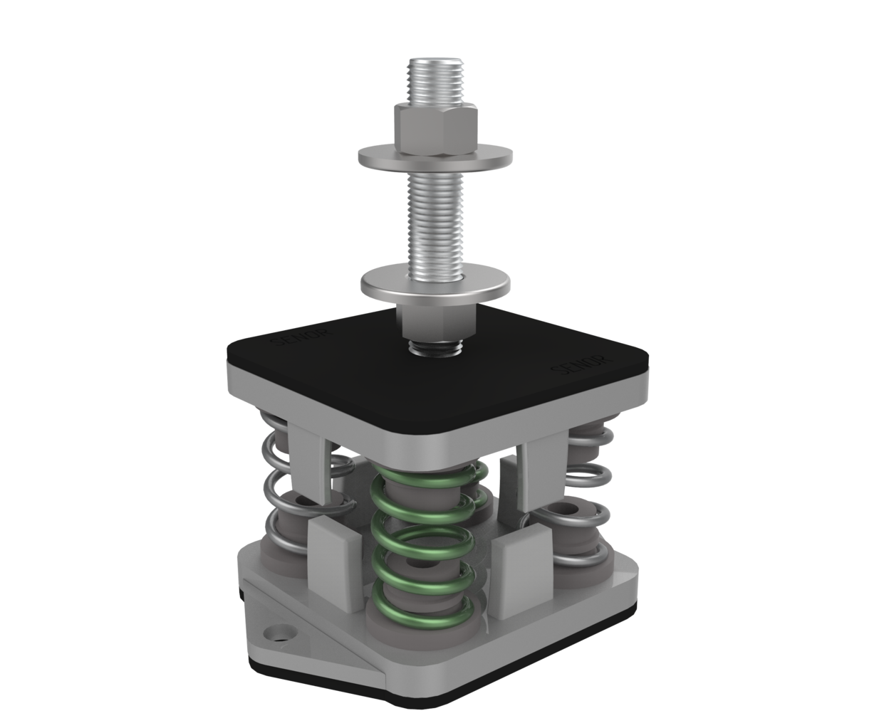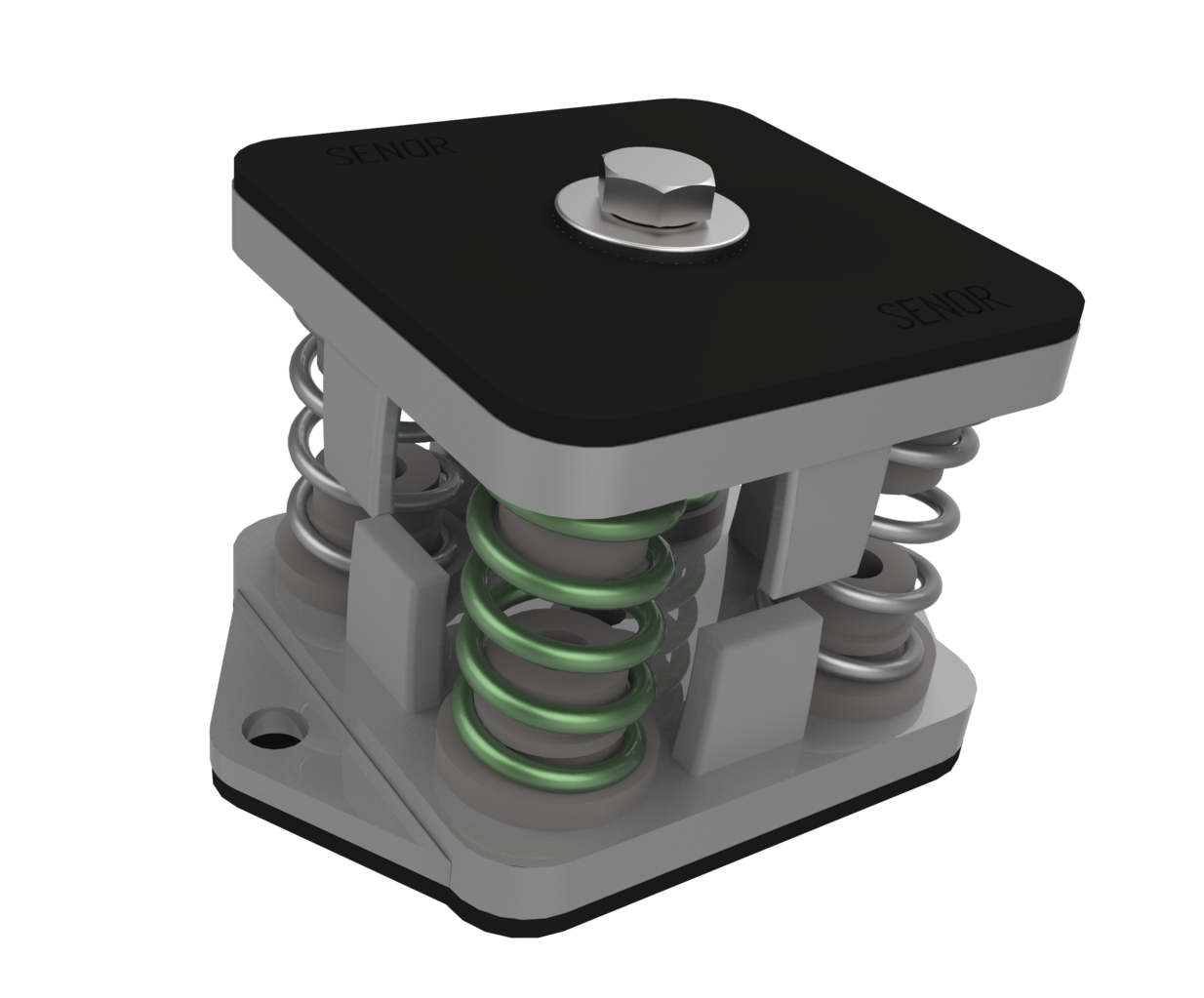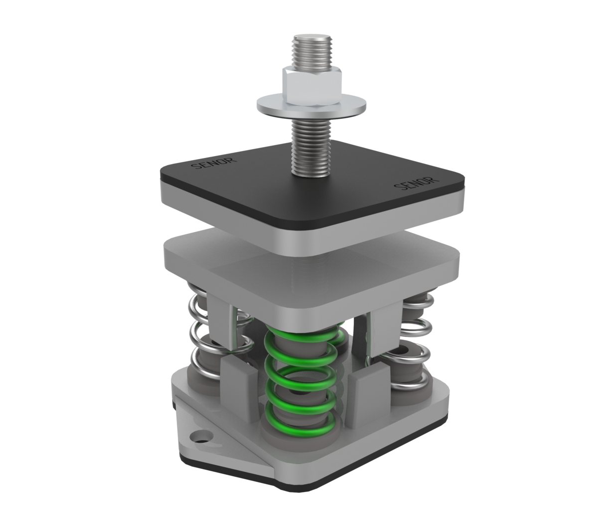 "Спирална система": Със сърцевина, образувана от стоманена пружини, произведени съгласно стандарт DIN2095, които осигуряват изолация срещу ниски честоти.Резонансна честота от 3 - 7 Hz.Антиоксидантно третиране: Завършването на пружината се състои от червено прахово покритие ral-330 с антиоксидантно третиране interpón 700