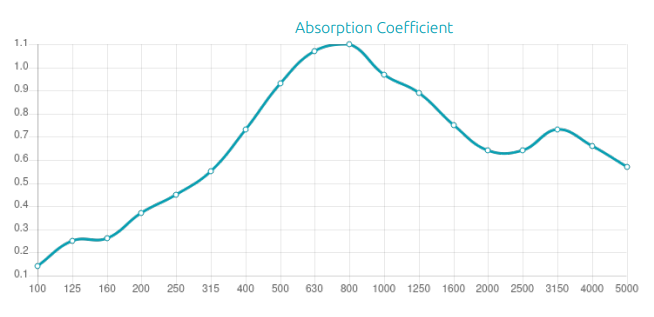 Диапазон на абсорбция: 315 Hz до 5000 Hz