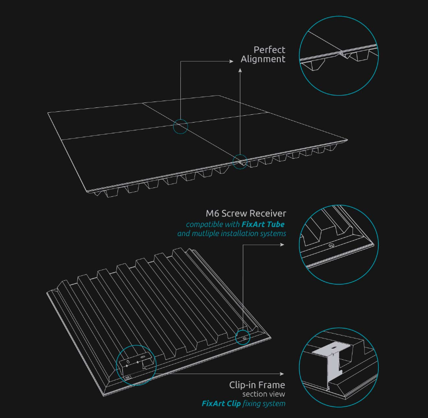 Azteka е впечатляваща комбинация от уникален акустичен дизайн Artnovion с високоефективни акустични ядра. Панелите Azteka могат лесно да се монтират на стени или тавани.