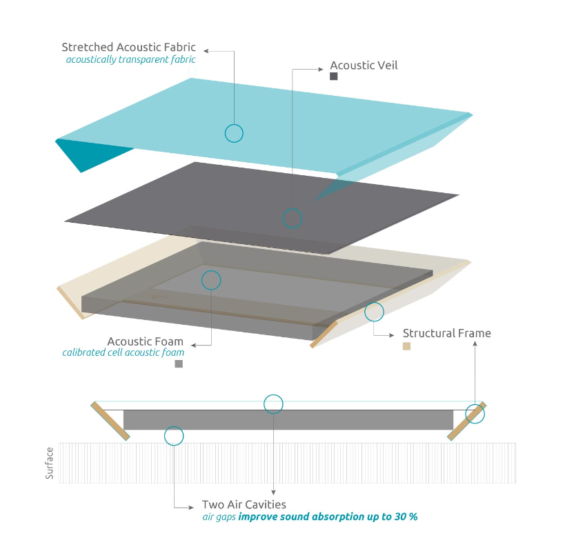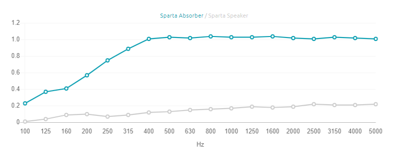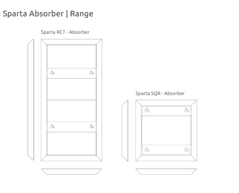 Sparta е акустичен панел с опростен дизайн, създаден за обхват на абсорбционно третиране от 350 Hz до 8000 Hz.