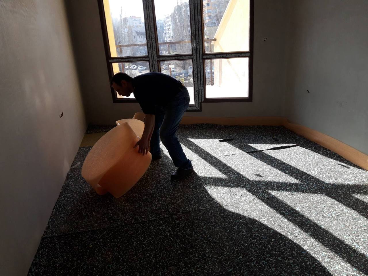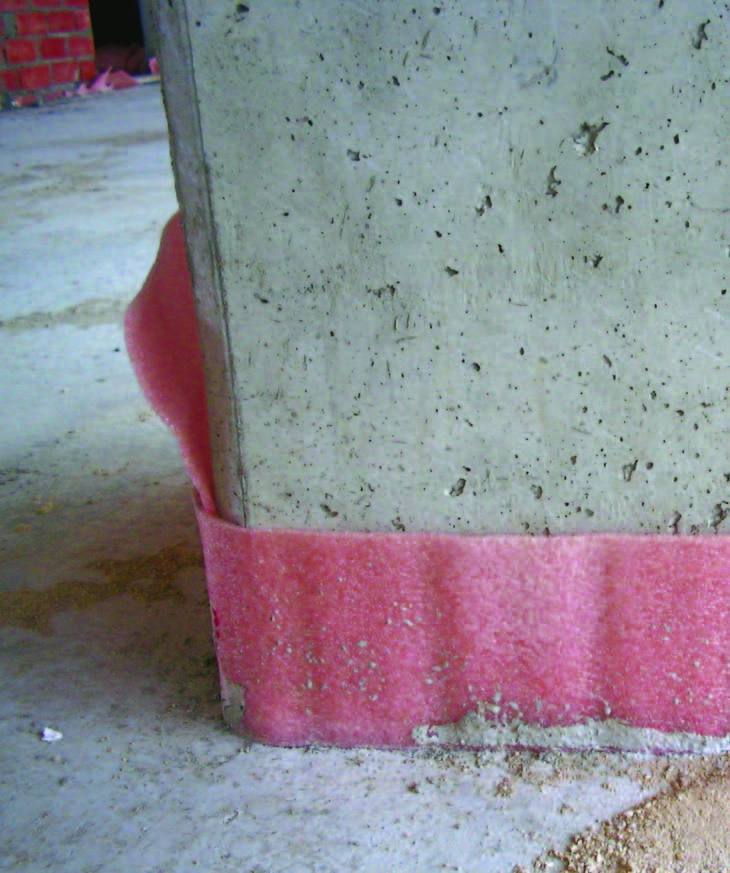 - Разделяне на плочата от колони и стени като допълнение към реализирането на плаващи подове, за да се предотвратят акустични мостове.