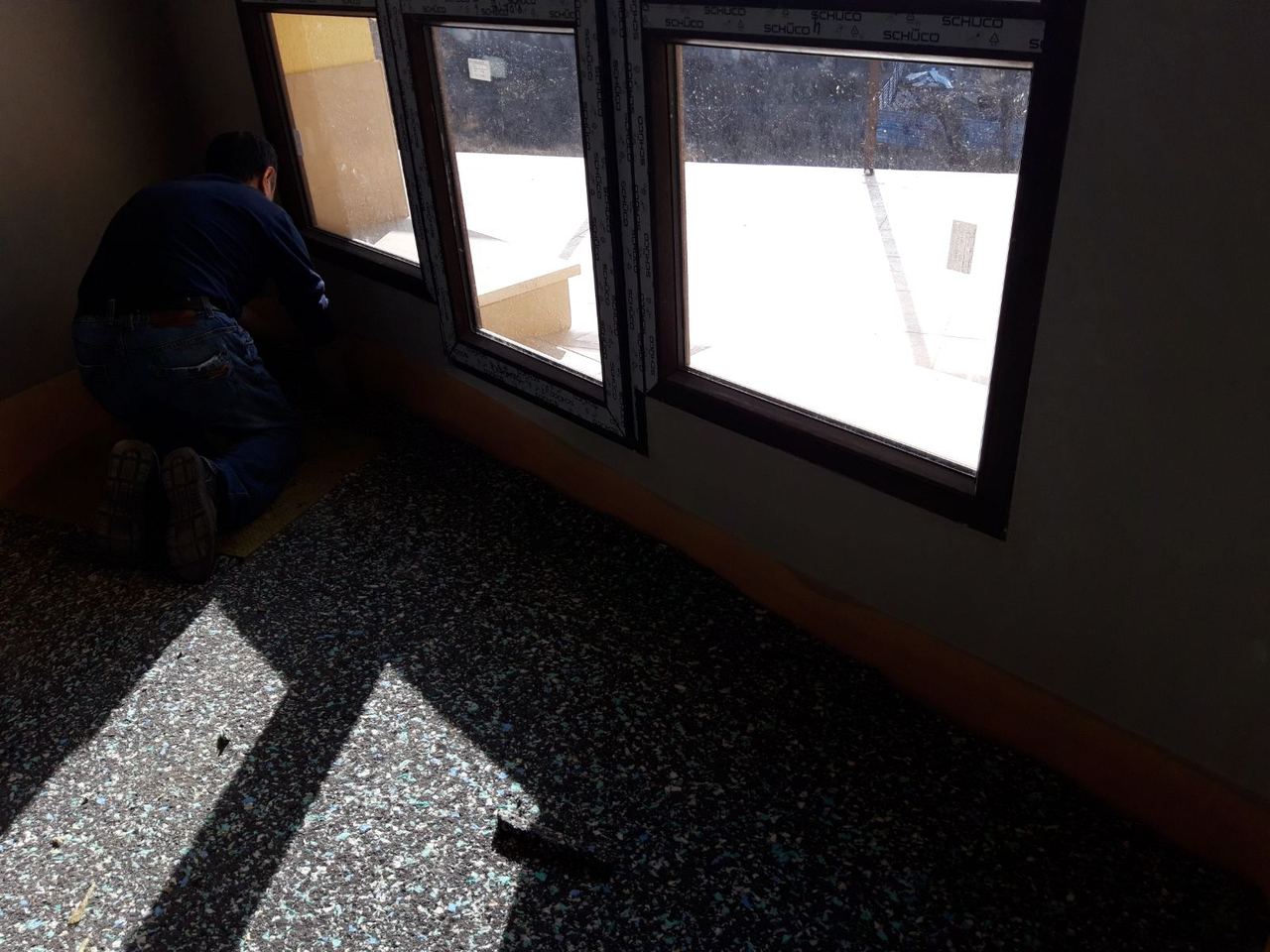 2- Сгънете излишъка от лентата на настилка и изрежете. След това инсталирайте первазите...