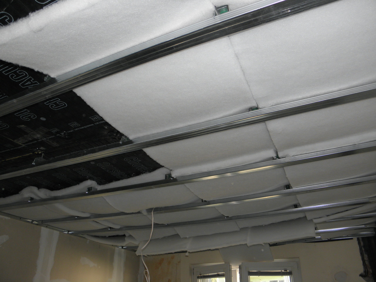 Поставете ChovANAPA върху ламинирания гипсокартон. При тези приложения, с плътни размери от 20 см, препоръчваме да се запълни поне 75% от разстоянието между окачения таван и конструктивния под.